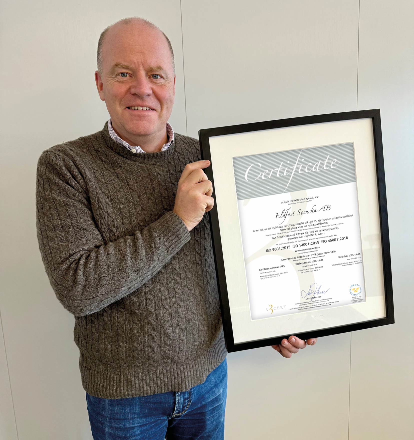 Omcertifieringen bekräftar att vårt kvalitetssystem fungerar som avsett och uppfyller kraven i ISO-standarderna 9001, 14001 och 45001.
